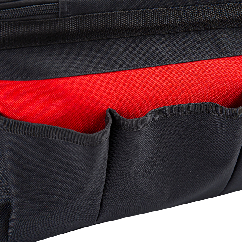 Cada bolsa de herramientas cuenta con múltiples capas y bolsillos para facilitar la organización en función del tamaño de las herramientas, lo que garantiza que cada herramienta tenga su propio espacio y evita confusiones o pérdidas. El diseño del bolsillo exterior permite acceder fácilmente a las herramientas de uso común, lo que ahorra tiempo de trabajo y mejora la eficiencia.