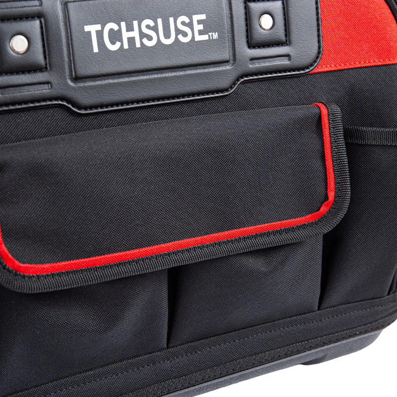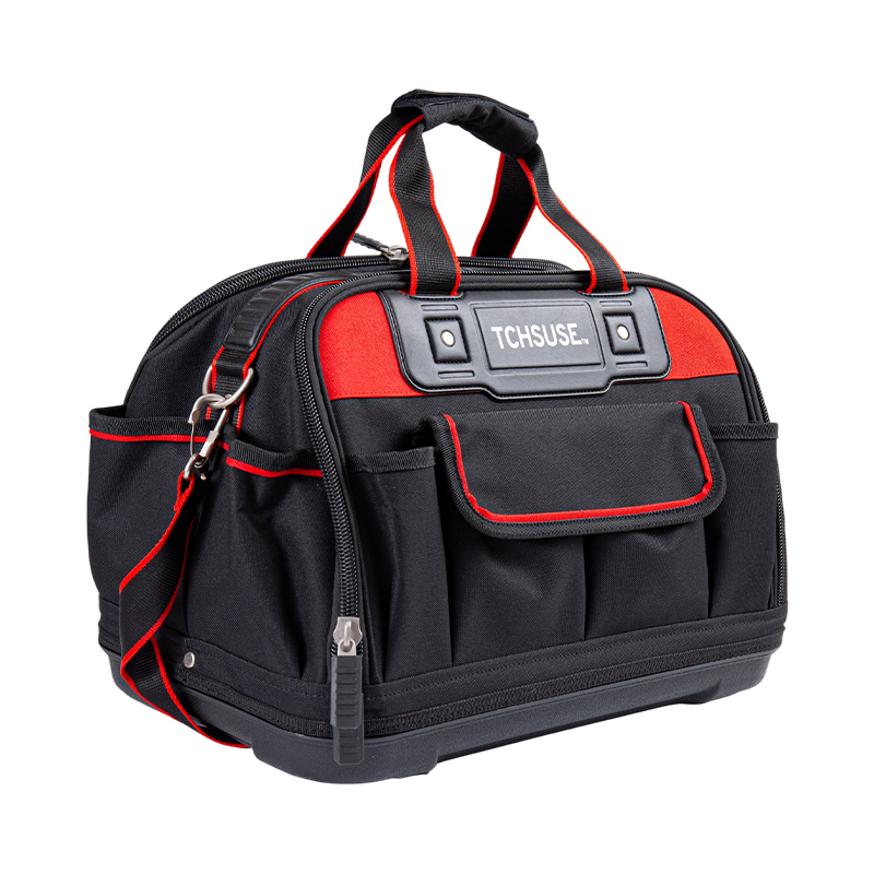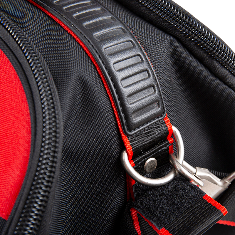 El interior está estratégicamente dividido en función de la ergonomía y los hábitos de uso de las herramientas, ofreciendo un sistema de almacenamiento de múltiples capas y bolsillos para herramientas como destornilladores, alicates, lápices eléctricos y taladros eléctricos, lo que garantiza que todas tengan su propio espacio de almacenamiento específico. Los prácticos bolsillos externos para herramientas pequeñas se adaptan al uso frecuente, lo que le ayuda a trabajar de forma eficiente, ahorrando tiempo y mejorando la eficiencia en el trabajo. Con costuras finas, una cremallera resistente y asas ensanchadas, ofrece comodidad y durabilidad, resistiendo las grietas y la deformación incluso con cargas pesadas. Su elegante combinación de colores negro y rojo encarna el espíritu de la artesanía, lo que lo hace adecuado para su uso en obras de construcción, fábricas y comercios.
