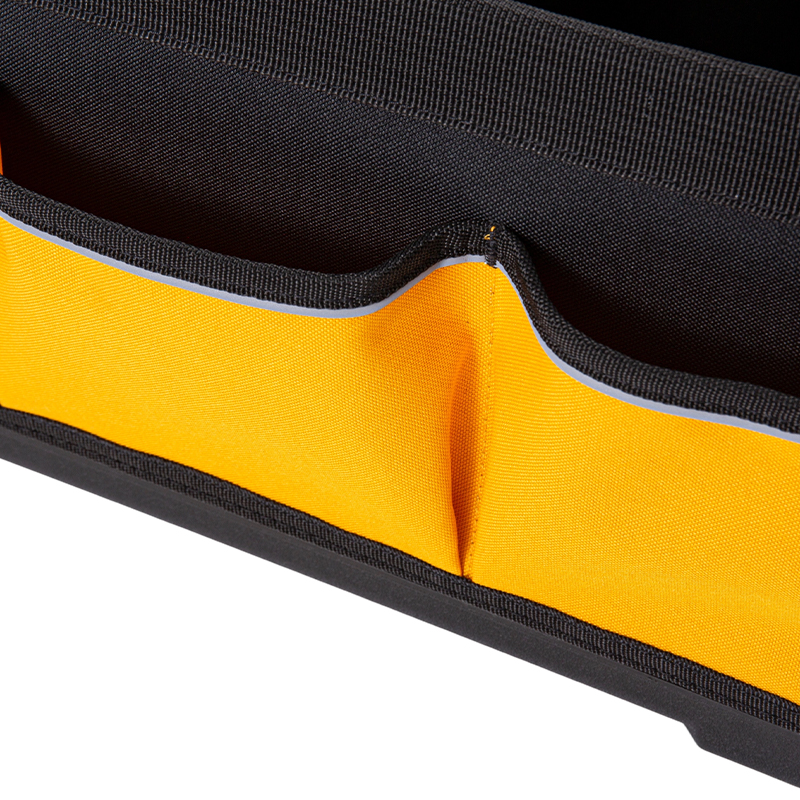 La bolsa para herramientas con base de plástico y tubos de acero combina la robustez de una estructura metálica con las propiedades resistentes al agua y a la suciedad de una base de plástico, lo que la hace adecuada para trabajos móviles de alta frecuencia y reparaciones in situ. La base está fabricada con un plástico técnico de alta resistencia que es resistente al desgaste y a la humedad, mientras que la estructura de soporte de tubos de acero garantiza la estabilidad y resiste la deformación. La gran abertura superior permite un acceso rápido a las herramientas, mientras que los bolsillos internos multifuncionales pueden albergar una gran variedad de herramientas comunes. Fabricada con tejido de poliéster de alta densidad 600D/1680D, es resistente a la abrasión y al desgarro. Algunos modelos cuentan con una correa ajustable para el hombro que se adapta a diversas necesidades de transporte. Ampliamente aplicable en ingeniería eléctrica, construcción, mantenimiento de equipos y otras aplicaciones, es una solución fiable para la gestión de herramientas para técnicos profesionales.