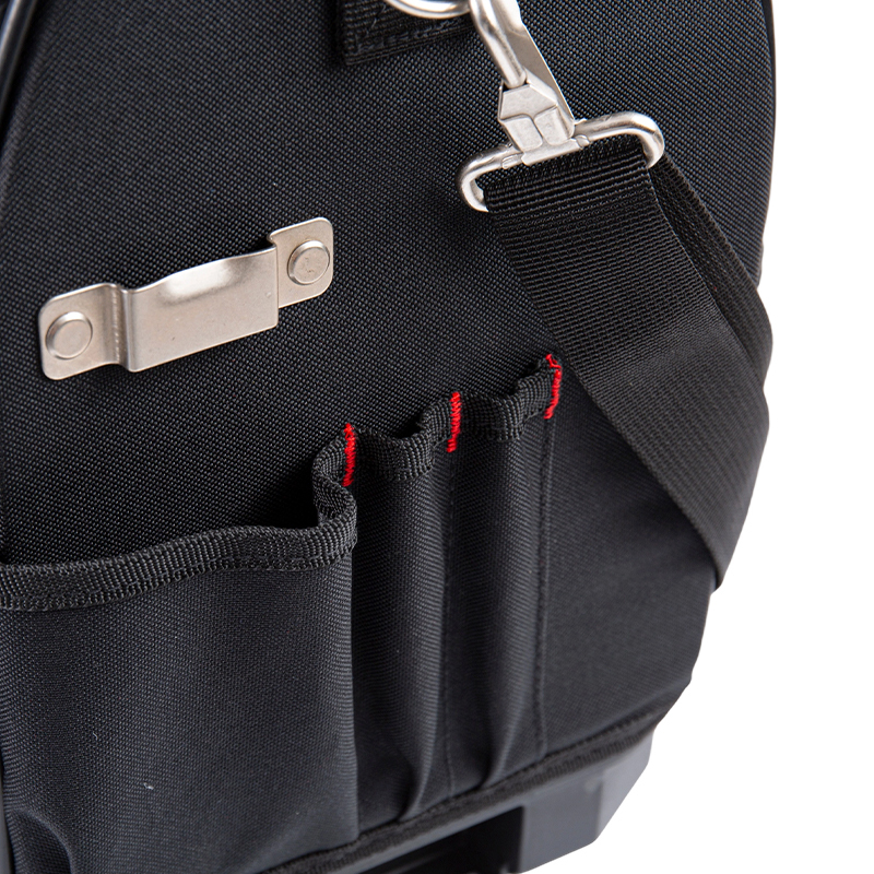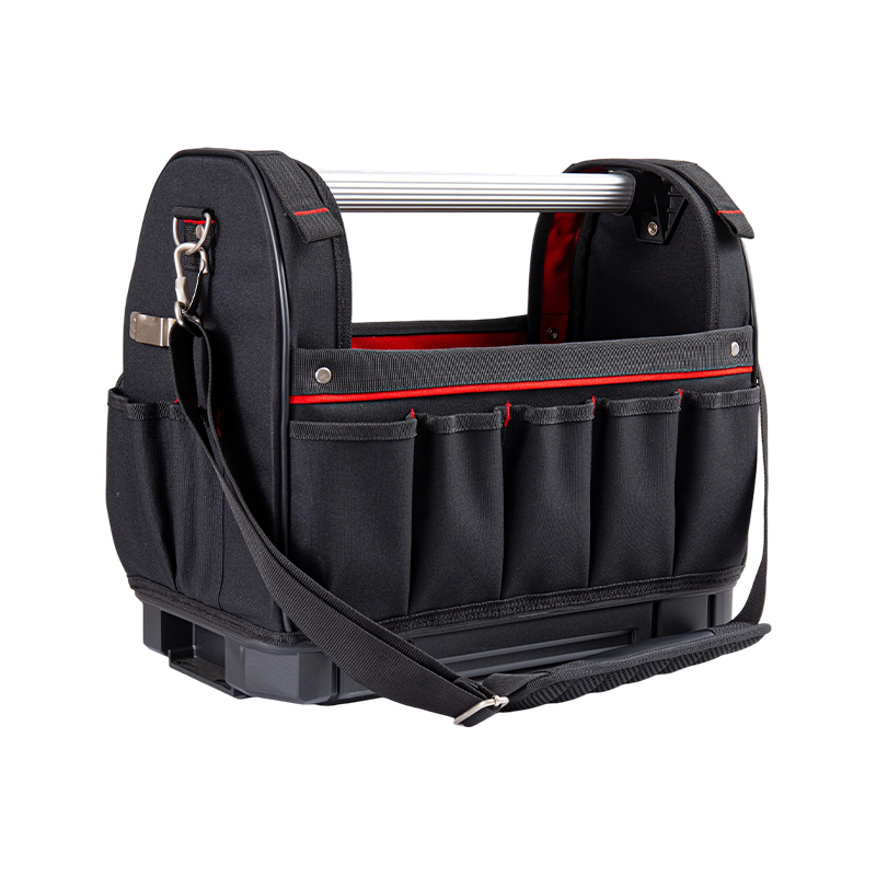La bolsa para herramientas con estructura de acero y base de plástico cuenta con un robusto armazón de tubos de acero que le confiere una estructura estable y resistente a la deformación. Su base de plástico de alta resistencia ofrece una excelente impermeabilidad, protección contra el polvo y resistencia a los impactos. Su exterior está fabricado con tejido Oxford reforzado 600D o 600D+1200D, lo que la hace adecuada para un uso frecuente. Equipada con una correa para el hombro desmontable y un asa reforzada, es ideal para su uso en una gran variedad de situaciones, incluyendo técnicos de reparación, trabajadores de la construcción y mantenimiento de propiedades. Disponible en tamaños de 17, 18 y 19 pulgadas, satisface las necesidades de almacenamiento de diversas herramientas de trabajo, combinando durabilidad y portabilidad.