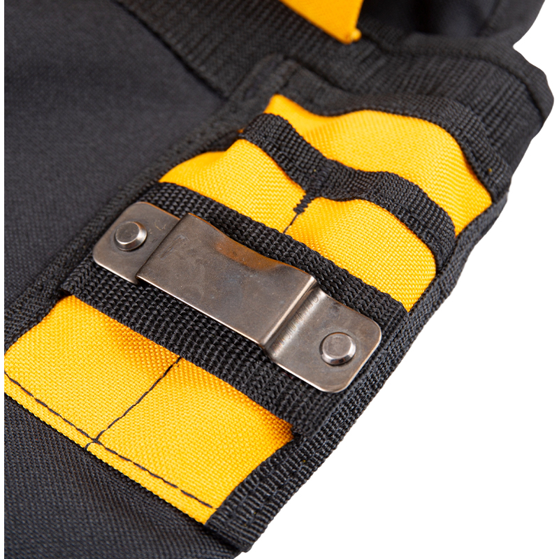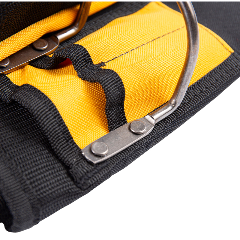 Esta riñonera específica para trabajadores, fabricada en tejido Oxford 600D, está hecha de tejido Oxford de alta resistencia con una excelente resistencia al desgaste y al desgarro. Puede mantener su durabilidad incluso en entornos de obra complejos y difíciles. La superficie del tejido Oxford ha sido tejida de forma densa y tratada con un revestimiento repelente al agua. No solo tiene un tacto grueso y crujiente, sino que también tiene buenas propiedades de protección contra la humedad, lo que protege eficazmente las herramientas de la lluvia o la erosión del polvo. En comparación con los materiales normales de lona o nailon, el tejido Oxford 600D resiste mejor el uso frecuente y la fuerza de la gravedad, lo que garantiza que la riñonera no se deforme ni se rompa fácilmente. Ya sea para trabajos en altura, mantenimiento eléctrico o construcción diaria, el soporte estable y la protección fiable que ofrece el tejido Oxford hacen que el almacenamiento de herramientas sea más seguro y la ejecución del trabajo más eficiente.